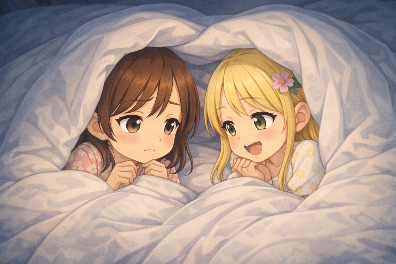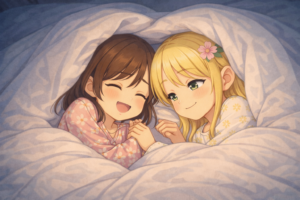 🌸Sakura and 🌷Sumire slept together in a small bed.